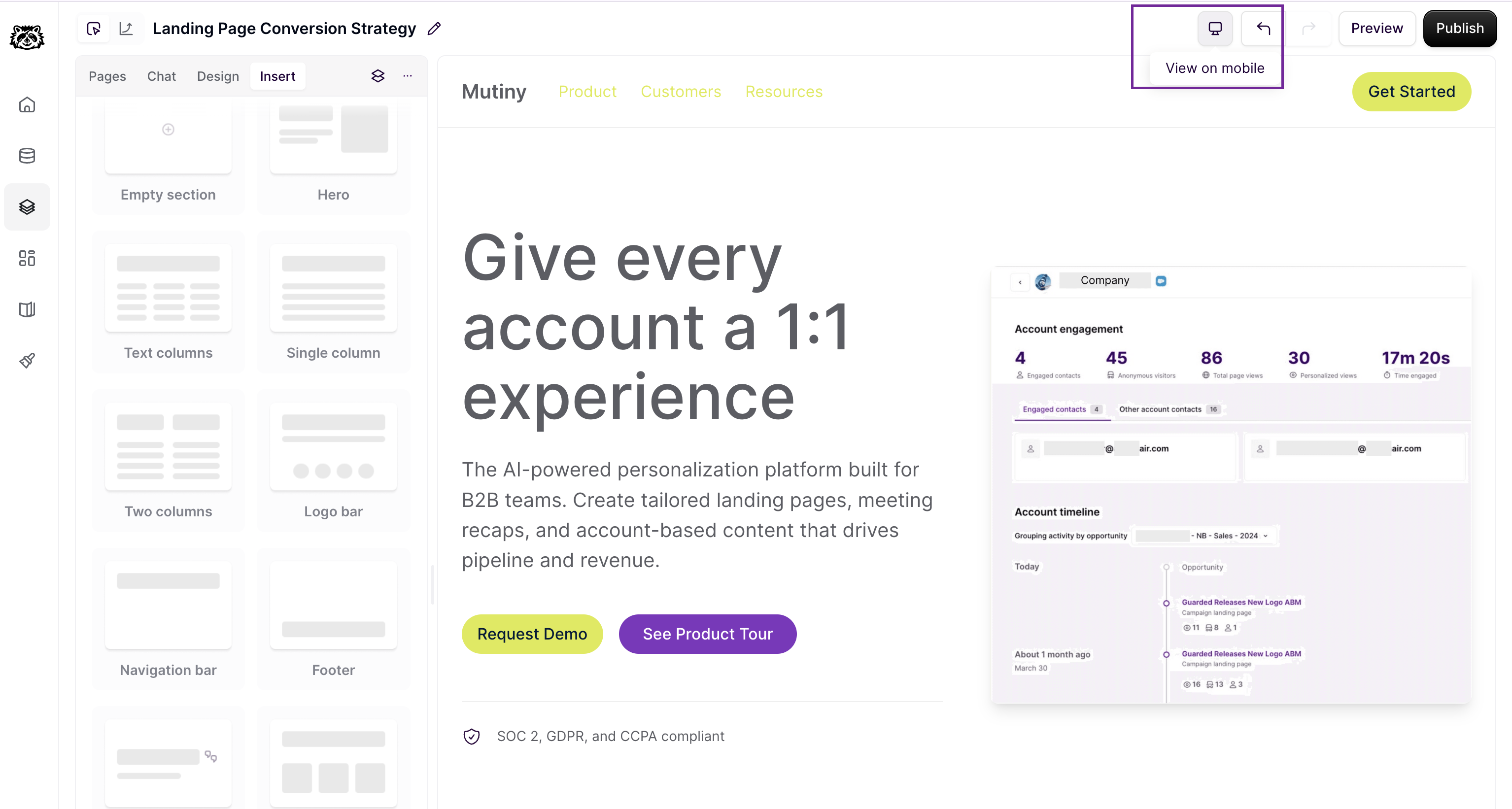Once the creative agent has finished making changes, you can preview these changes in a mobile view. To do this, toggle the mobile preview by selecting the View on Mobile button: