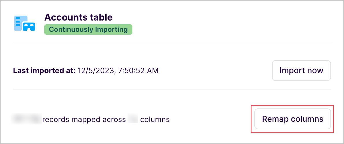 For each object, you can map the columns you need by selecting the "Remap columns" button.