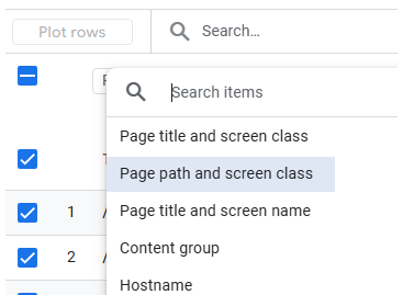 - Change Primary Dimension to Page path and screen class