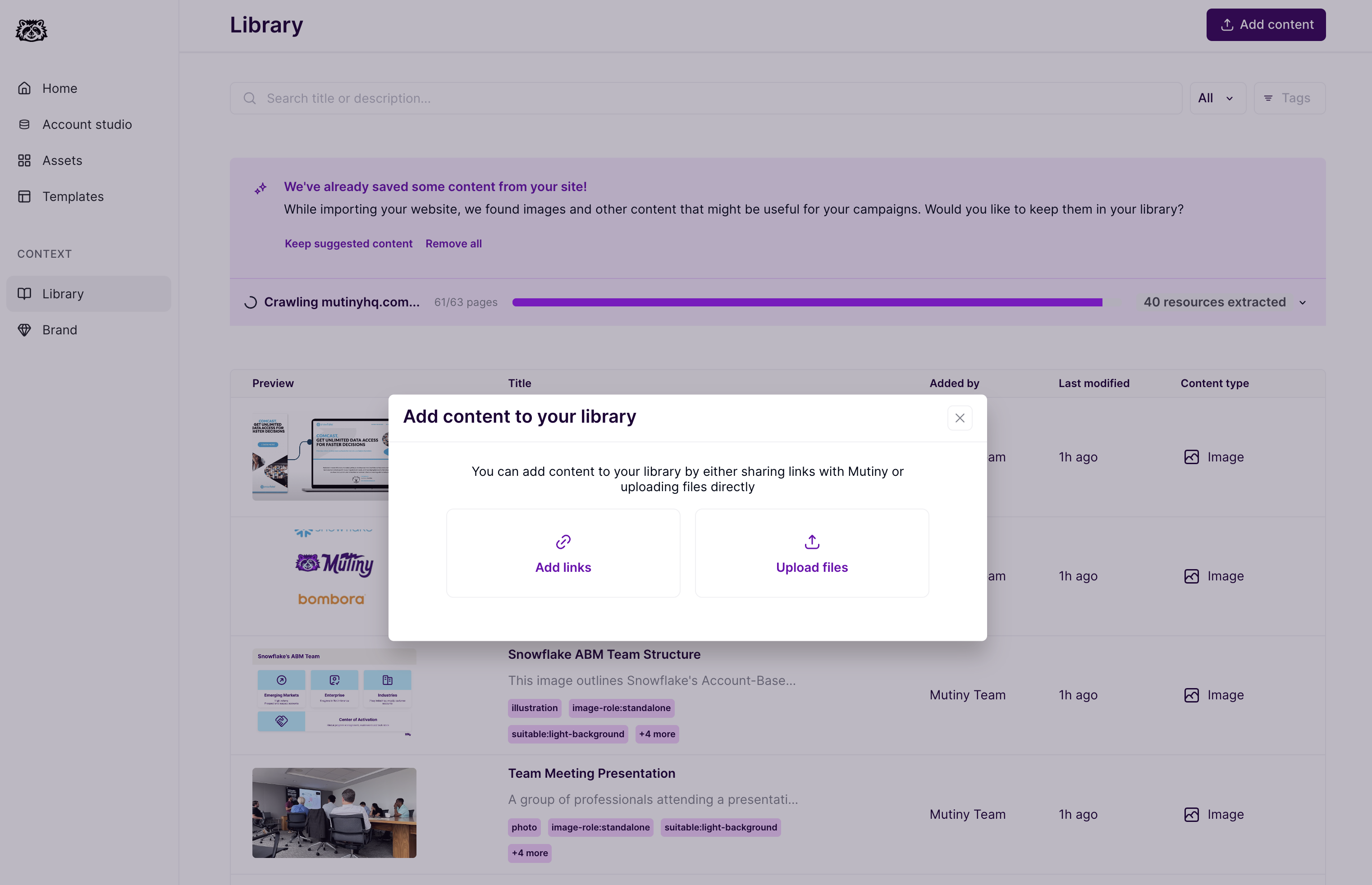 There are multiple ways to get account logos into your assets. You can empower the creative agent to insert logos into Mutiny assets or manually upload them into the desired section. This guide will go through the setup and process for each method