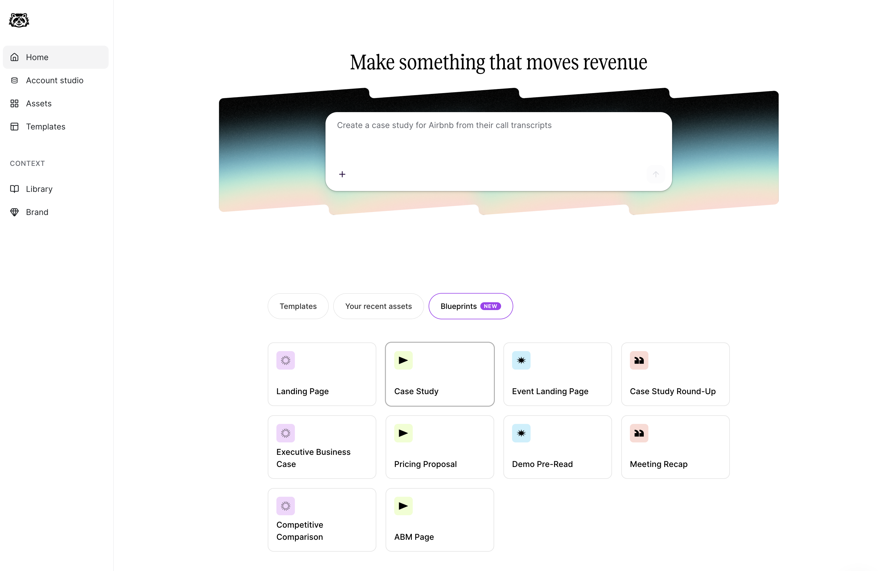Begin in the asset creation flow. Start with a prompt that incorporates that you're looking to build a page targeting a specific industry, persona, or role within organizations. Explain what you would like to create, choose a template layout that fits your needs, and the Creative Agent will launch.